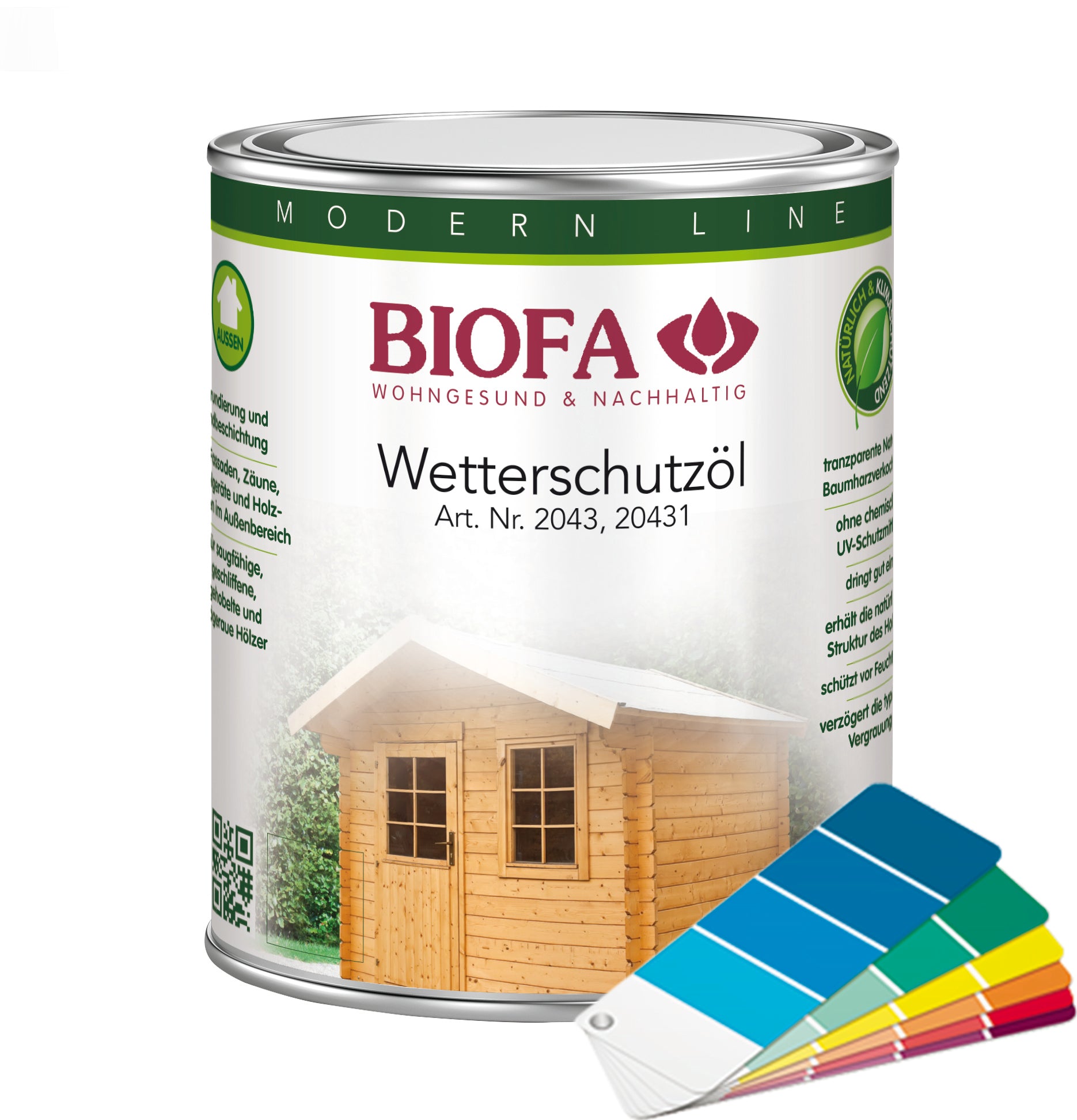 Област на приложение: BIOFA Wetterschutzöl е грунд и финишно покритие за изложени на атмосферни влияния дървени повърхности на открито като фасади, огради, детски съоръжения и дървени постройки. Подходящо за попивни, шлайфани, рендосани и грубо обработени дървесини.