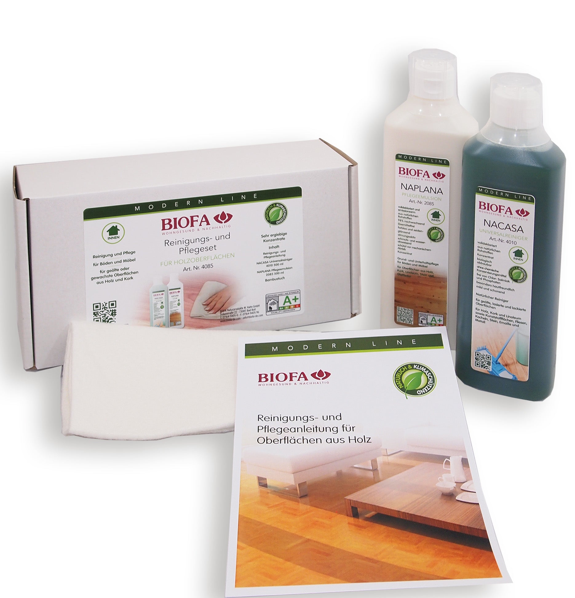 Редовната грижа – например с BIOFA Reinigungs- und Pflegeset – е ключова за запазване на качеството и естествения вид на дървото, независимо дали става дума за омаслени или ваксирани подове, мебели, кухненски плотове или други подобни повърхности.