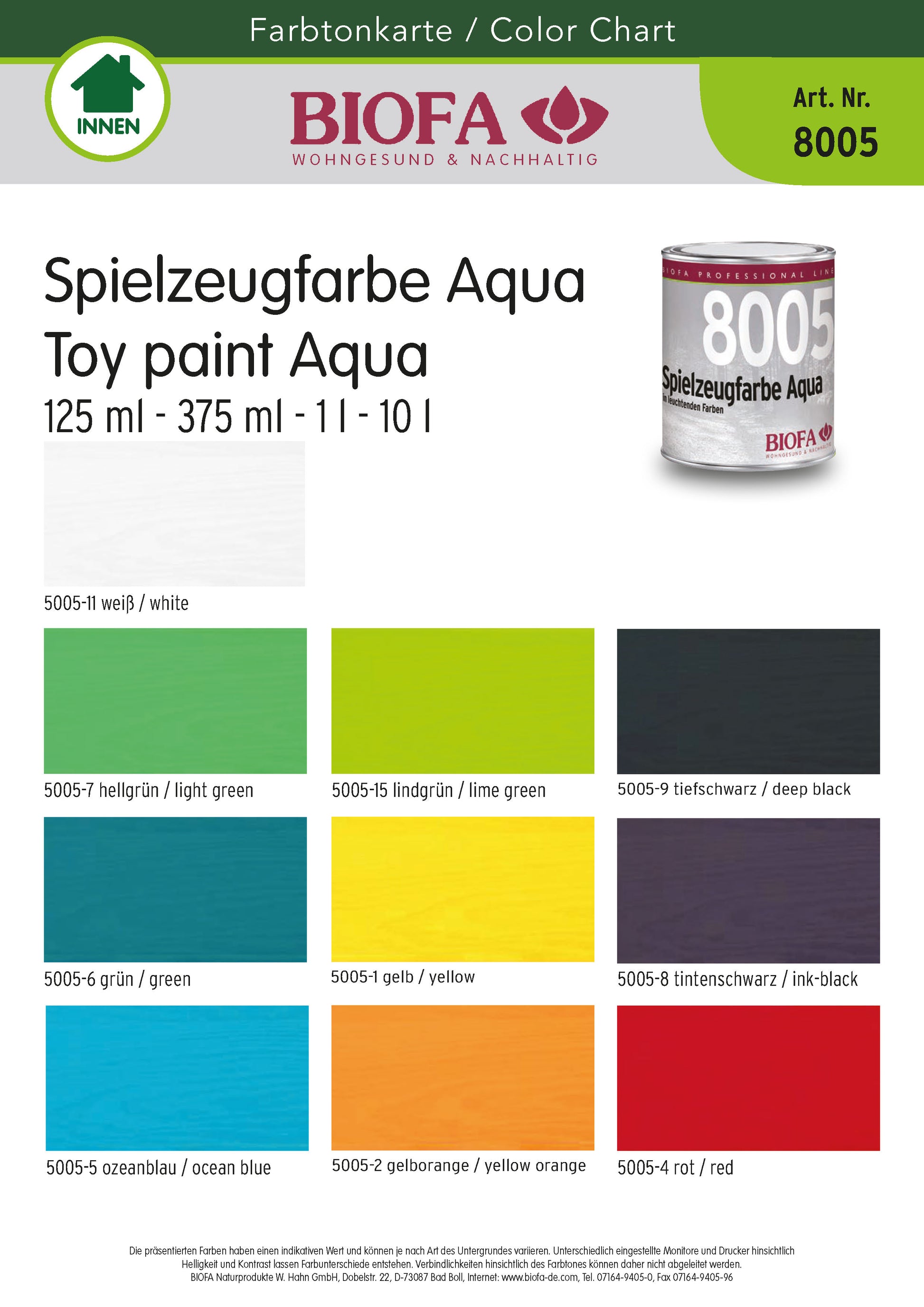 Боята за играчки е специално разработена за необработени дървени играчки за вътрешна употреба, но може да се използва и за мебели, врати, парапети и облицовки, изработени от попиващо и необработено дърво.