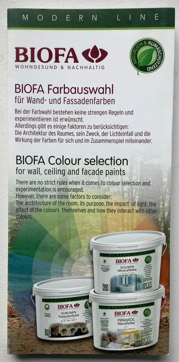 В Biofa предлагаме гама от естествени интериорни и екстериорни бои с ниско съдържание на ЛОС и без токсични вещества, както и бои и лакове за дърво, които се смесват по поръчка от нас за вас, така че да можем да възпроизвеждаме тези цветове отново и отново в абсолютно същия нюанс! Това е идеално, ако искате да поръчате в бъдеще цвят, който вече сте закупили.